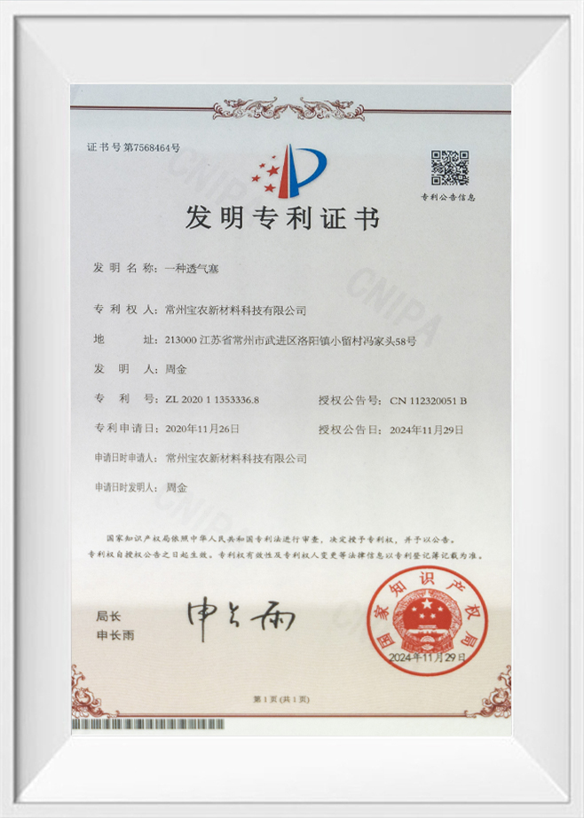 Bir profesyonel olarak Çin Su Geçirmez Havalandırma Fişi Üreticisi ve Özel Havalandırma Fişi Fabrikası , Changzhou Baonong New Material Technology Co., Ltd.'nin kökleri, kuruluşundan bu yana “Ejderha Şehri” olarak bilinen Changzhou'da bulunmaktadır. Şirket, sektördeki gelişme trendlerini yakından takip ediyor ve su geçirmez ve nefes alabilen teknolojilerdeki sürekli yeniliklere odaklanıyor.